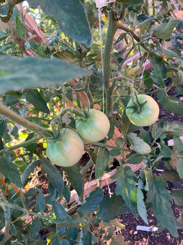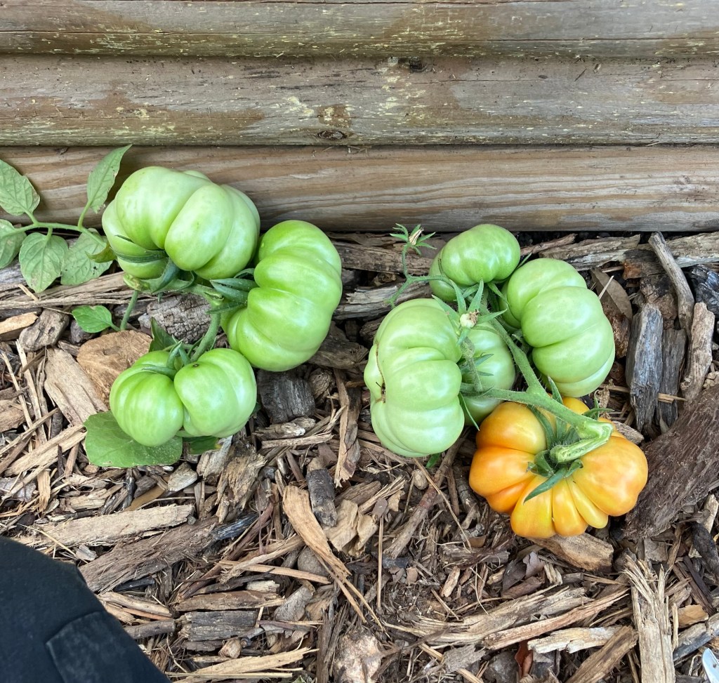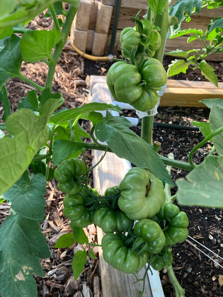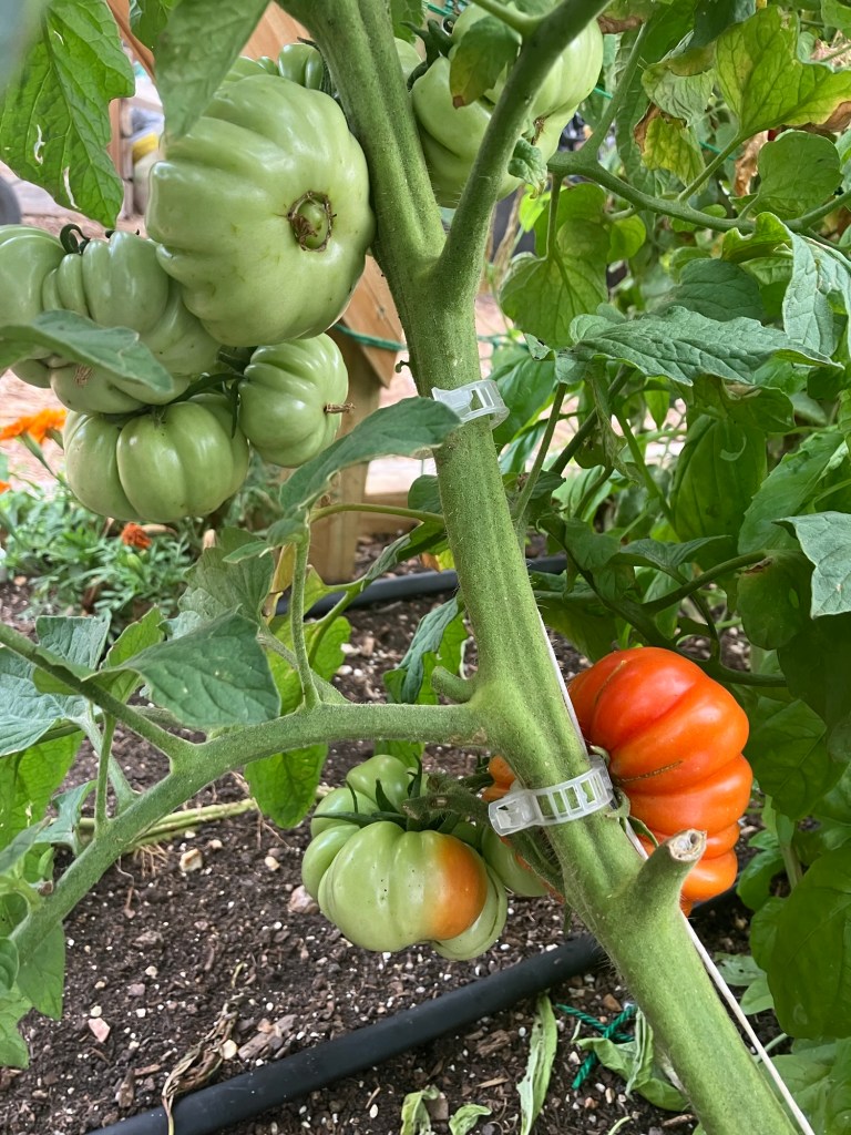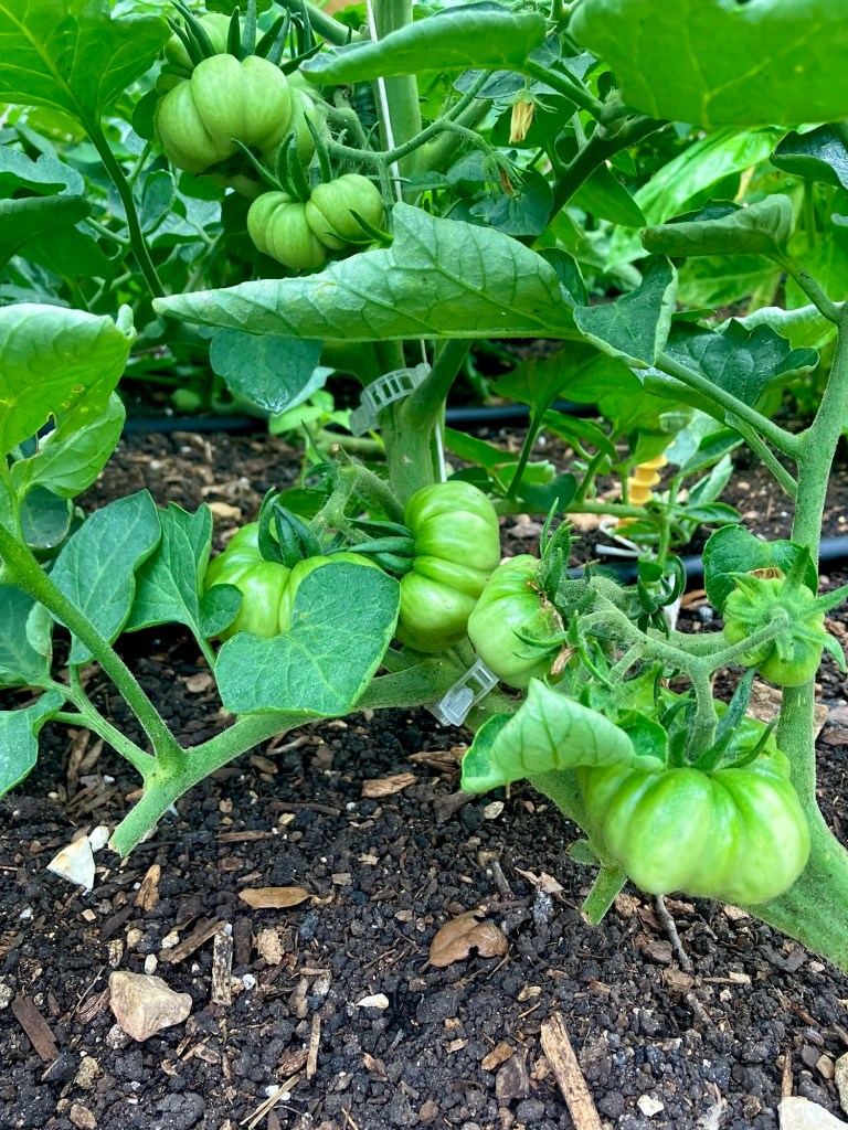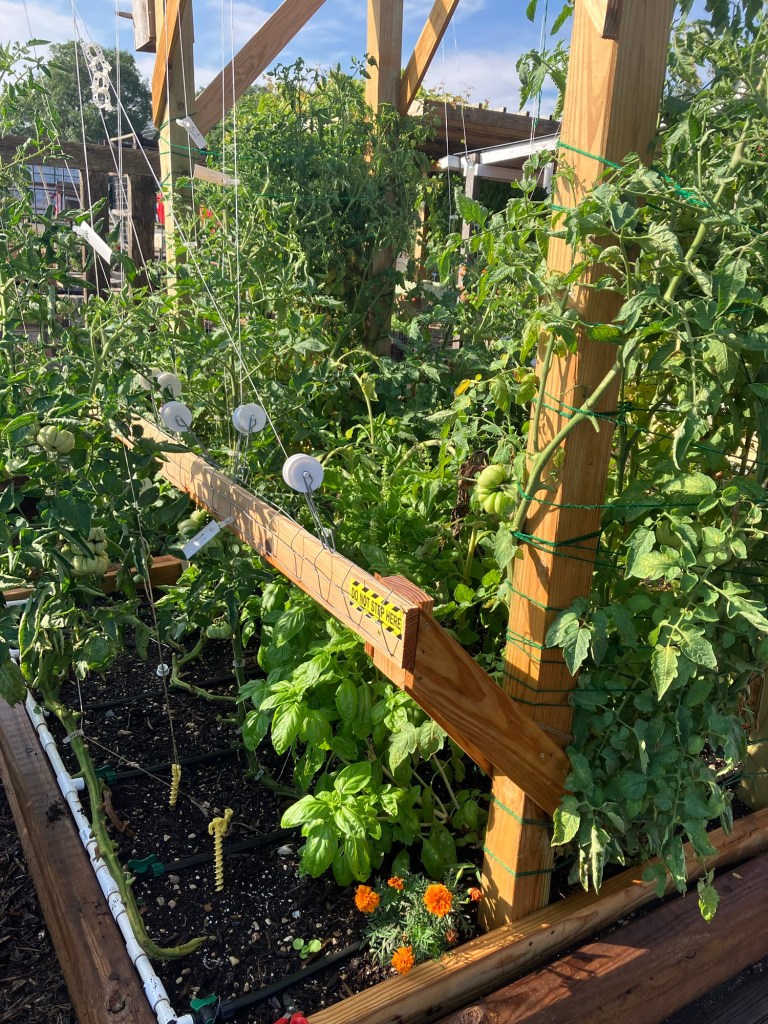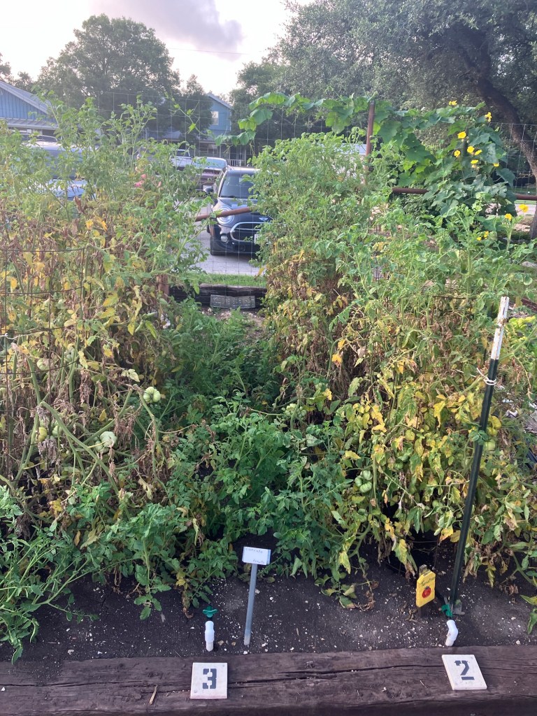 The bed was replanted with two varieties of large slicer, indeterminate tomatoes on July 21; Azoycha & Better Boy.