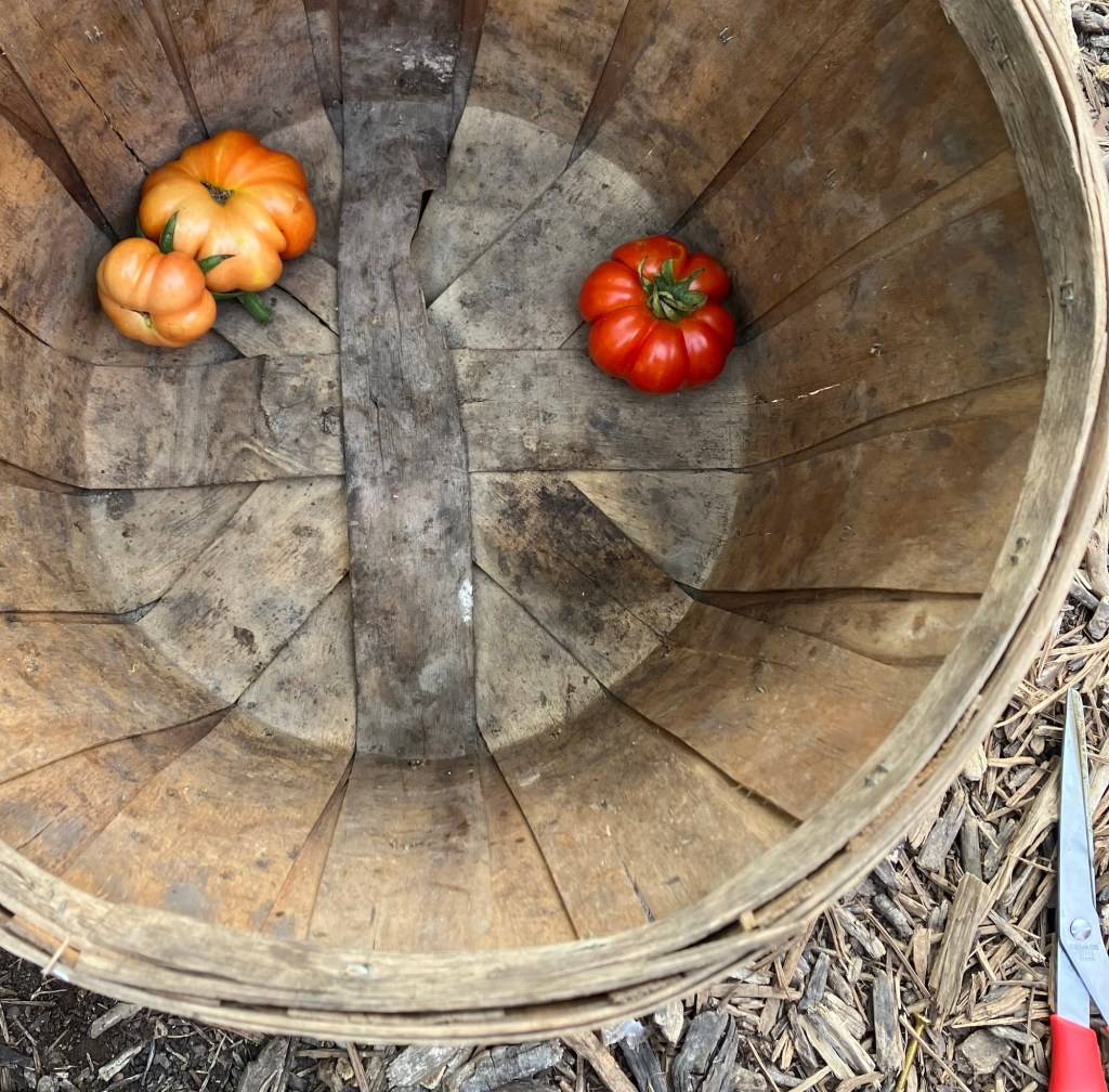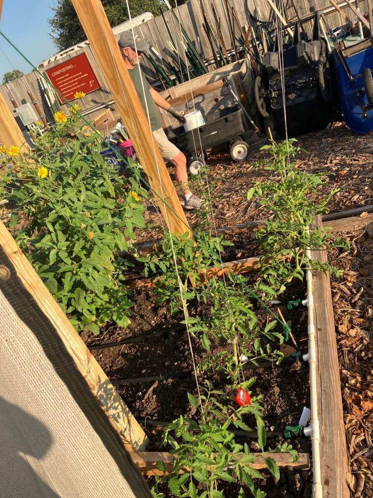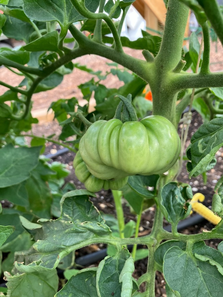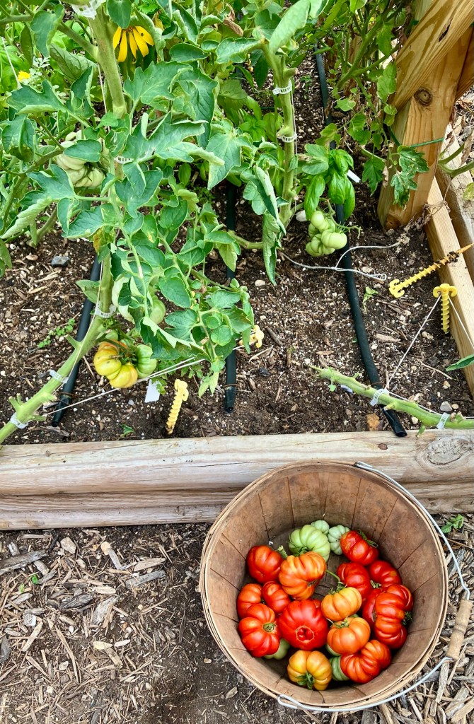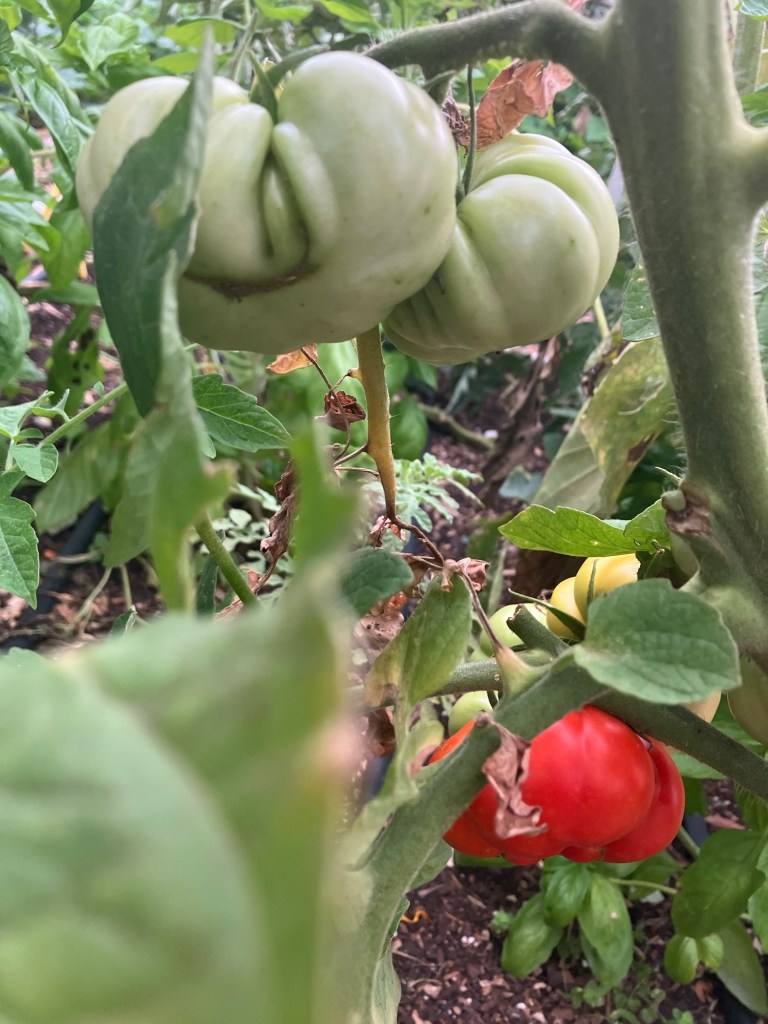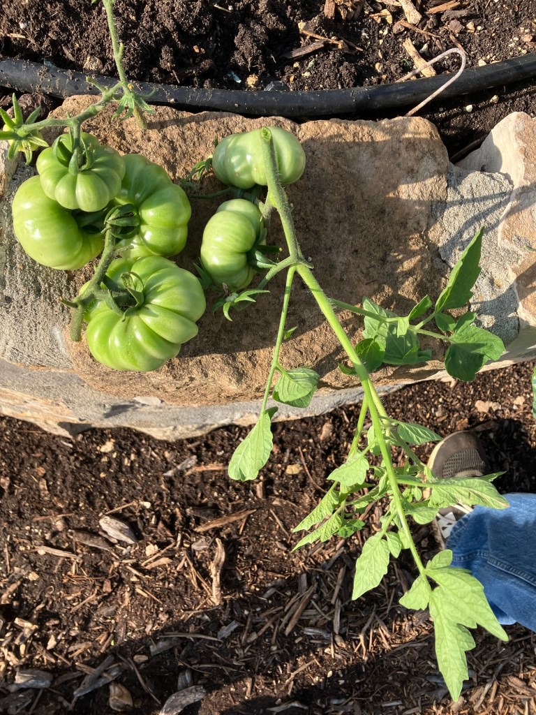 The bed was replanted with two varieties of large slicer, indeterminate tomatoes on July 21; Azoycha & Better Boy.