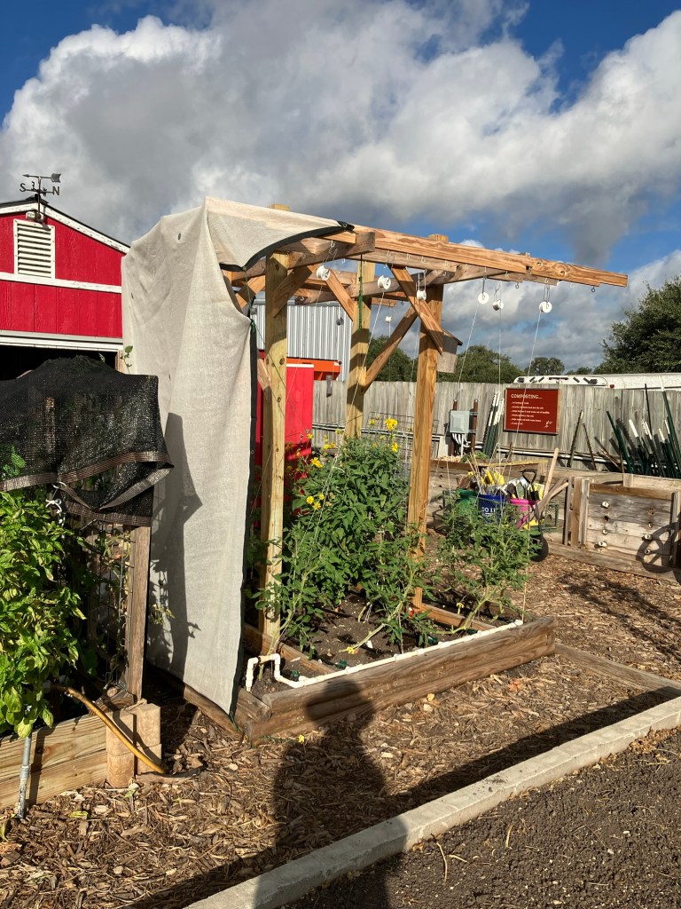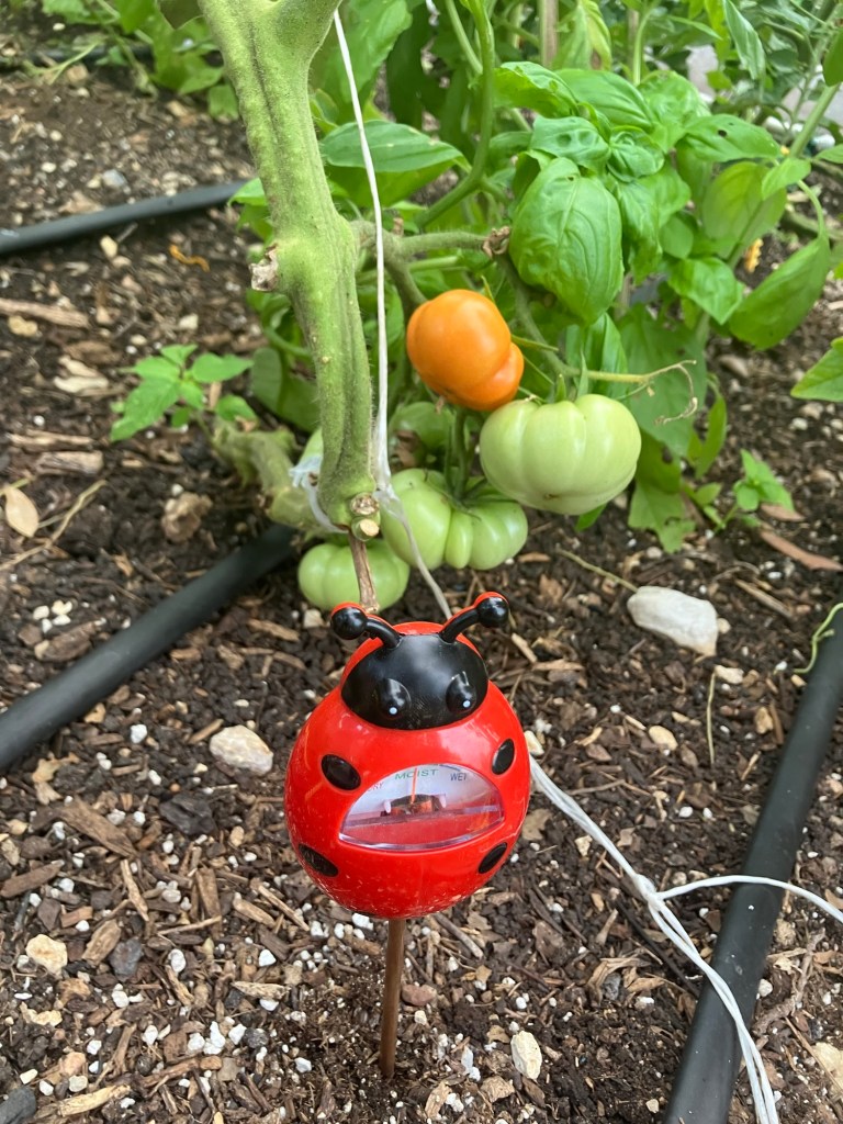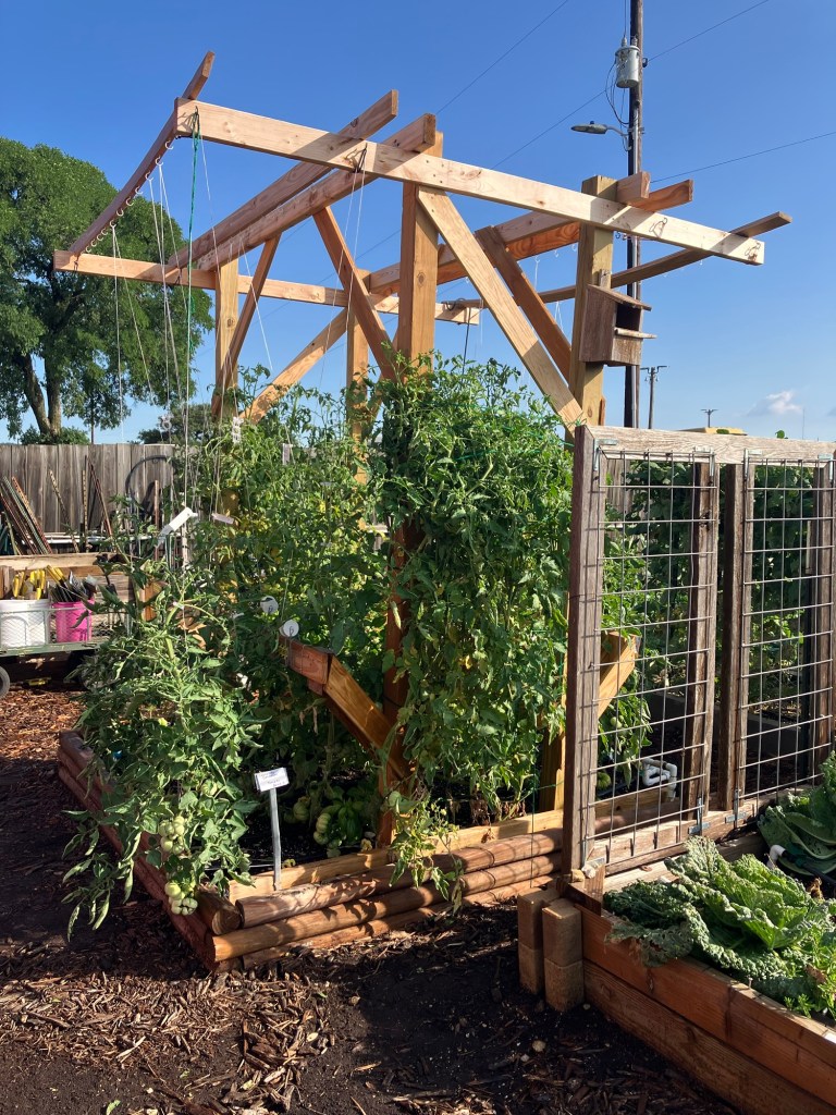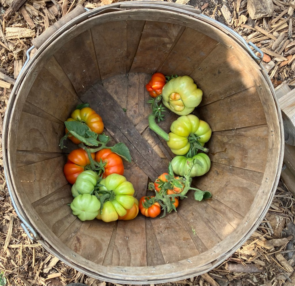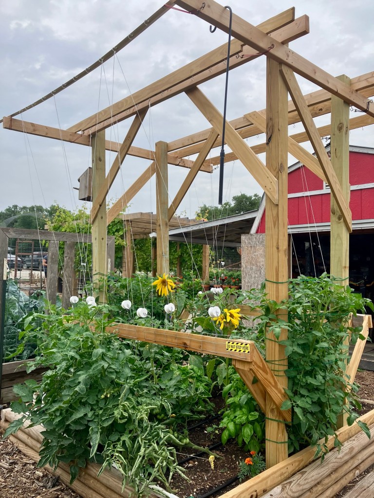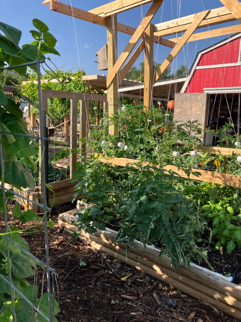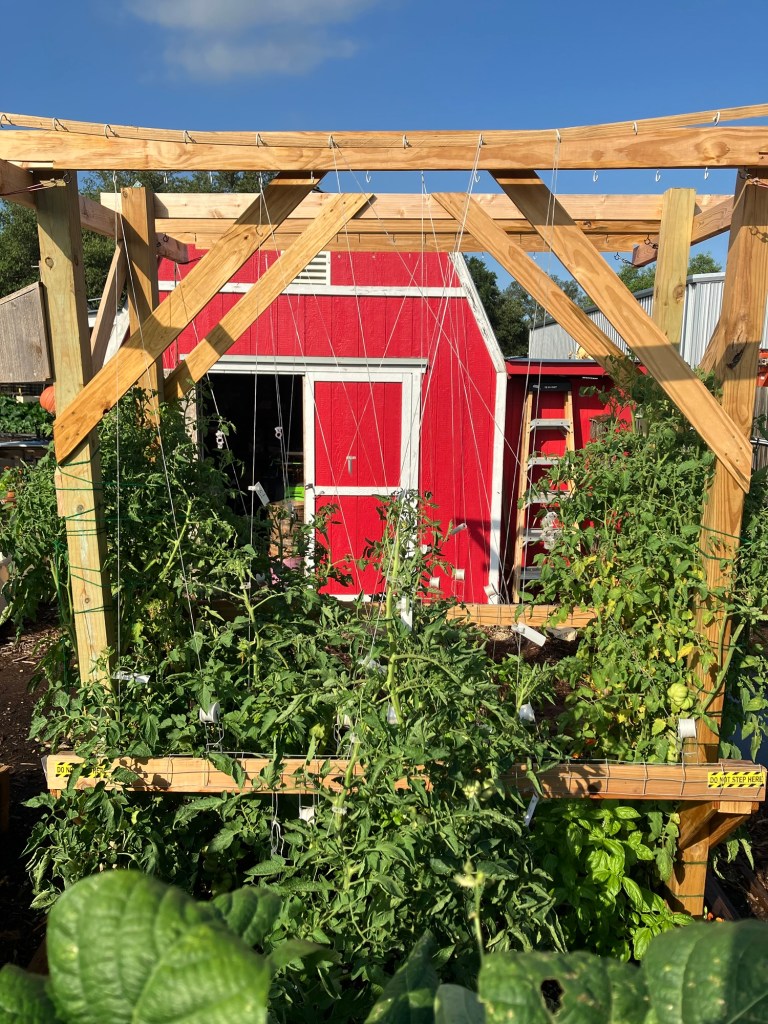 The bed was replanted with two varieties of large slicer, indeterminate tomatoes on July 21; Azoycha & Better Boy.