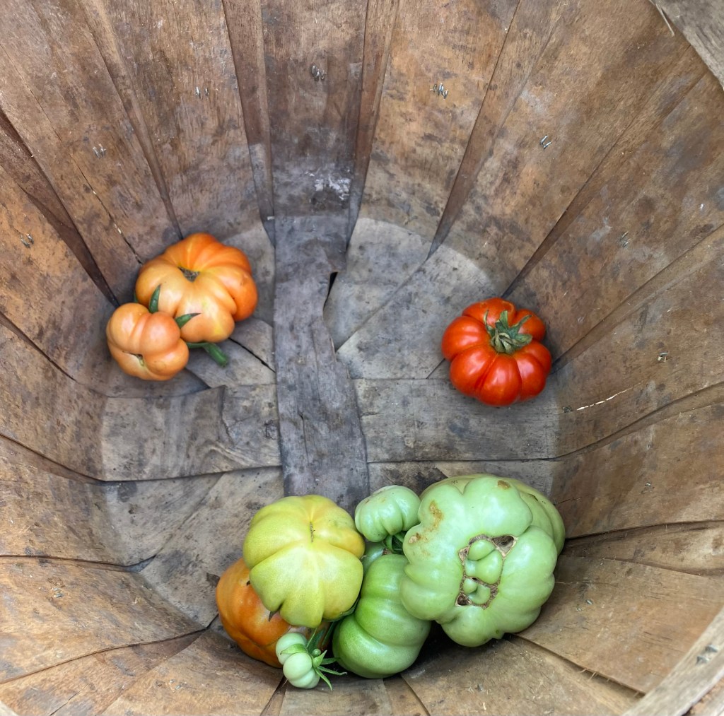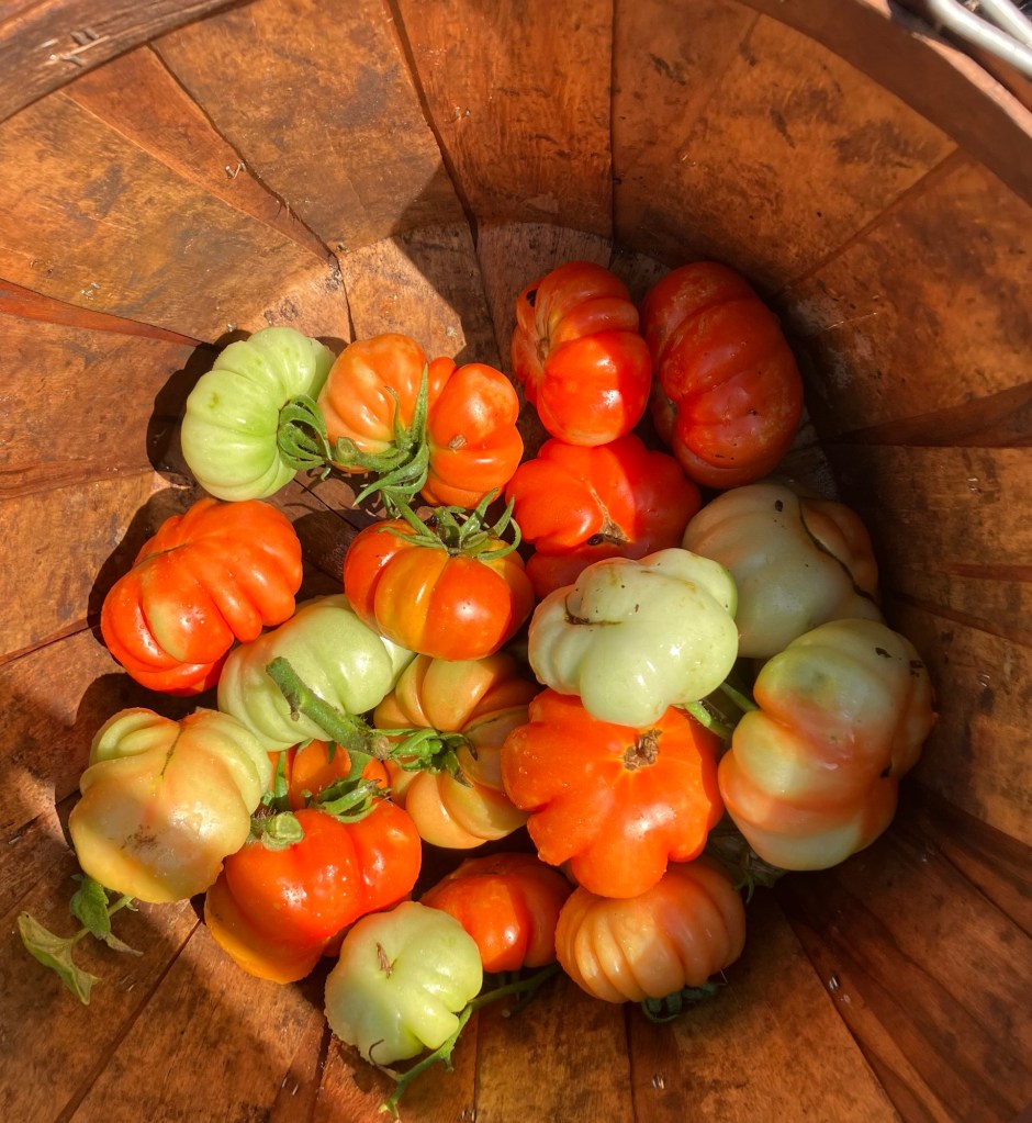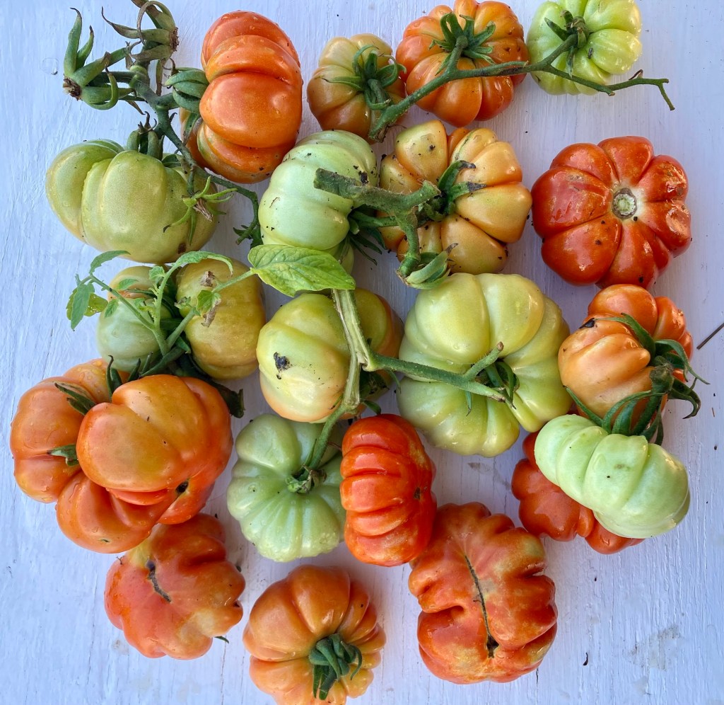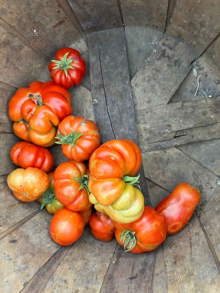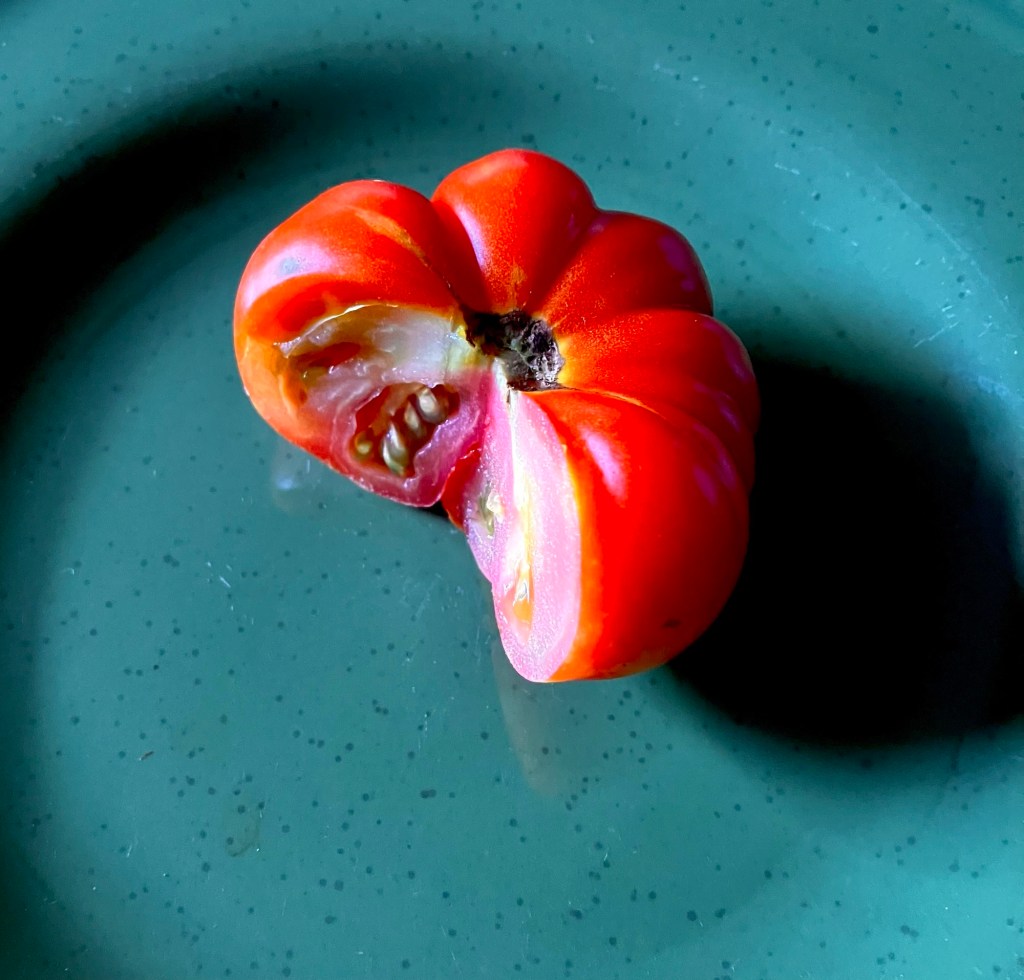 I love how the ribs of these tomatoes are so much like citrus segments. Damaged segments can be cut out & the rest saved, and there is virtually no core.